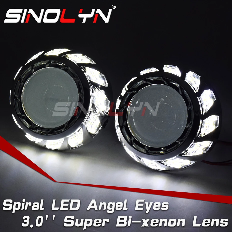 sinolyn angel eyes headlight lenses h4 h7 bixenon projector hid 3 0 super lens spiral halos for car lights accessories retrofit car light accessories aliexpress