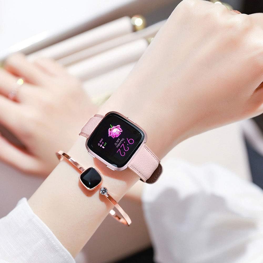 edimens echtlederarmband kompatibel mit fitbit versa 2 fitbit versa lite se fitbit versa schlankes ersatzarmband aus leder fur versa frauen manner schwarz champagner rosegold hellbraun amazon de sport freizeit