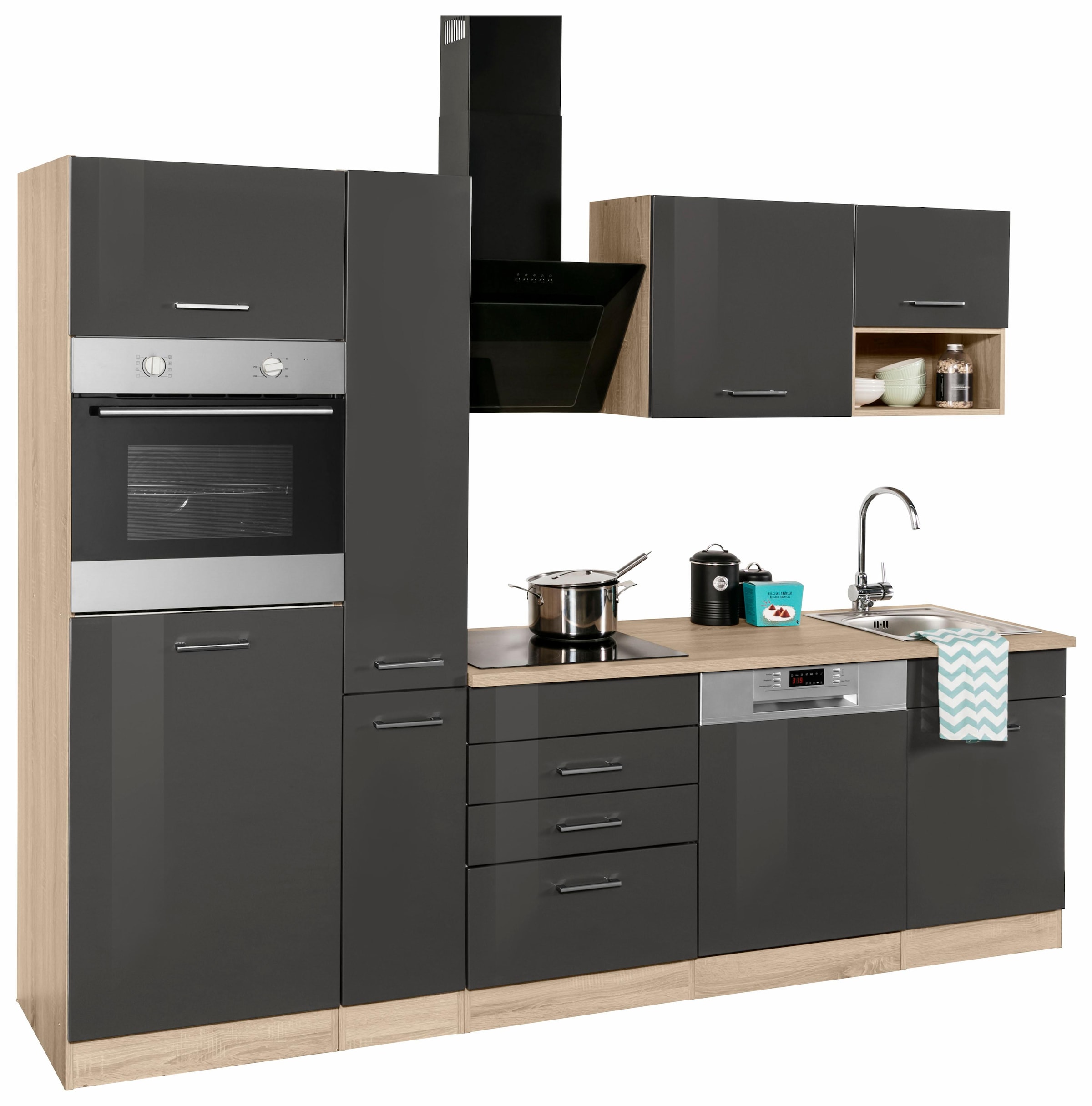 respekta premium kuchenzeile rp250egcbo breite 250 cm mit elektrogeraten grau hochglanz bauhaus