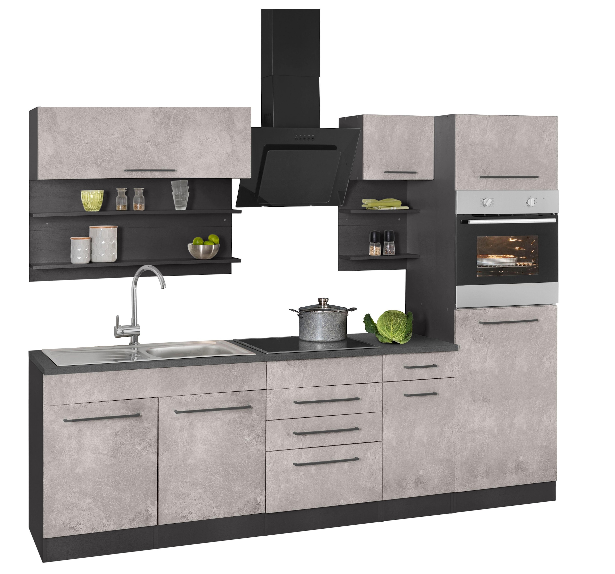 held mobel kuchenzeile tulsa mit e geraten breite 270 cm schwarze metallgriffe hochwertige mdf fronten auf raten bestellen quelle de