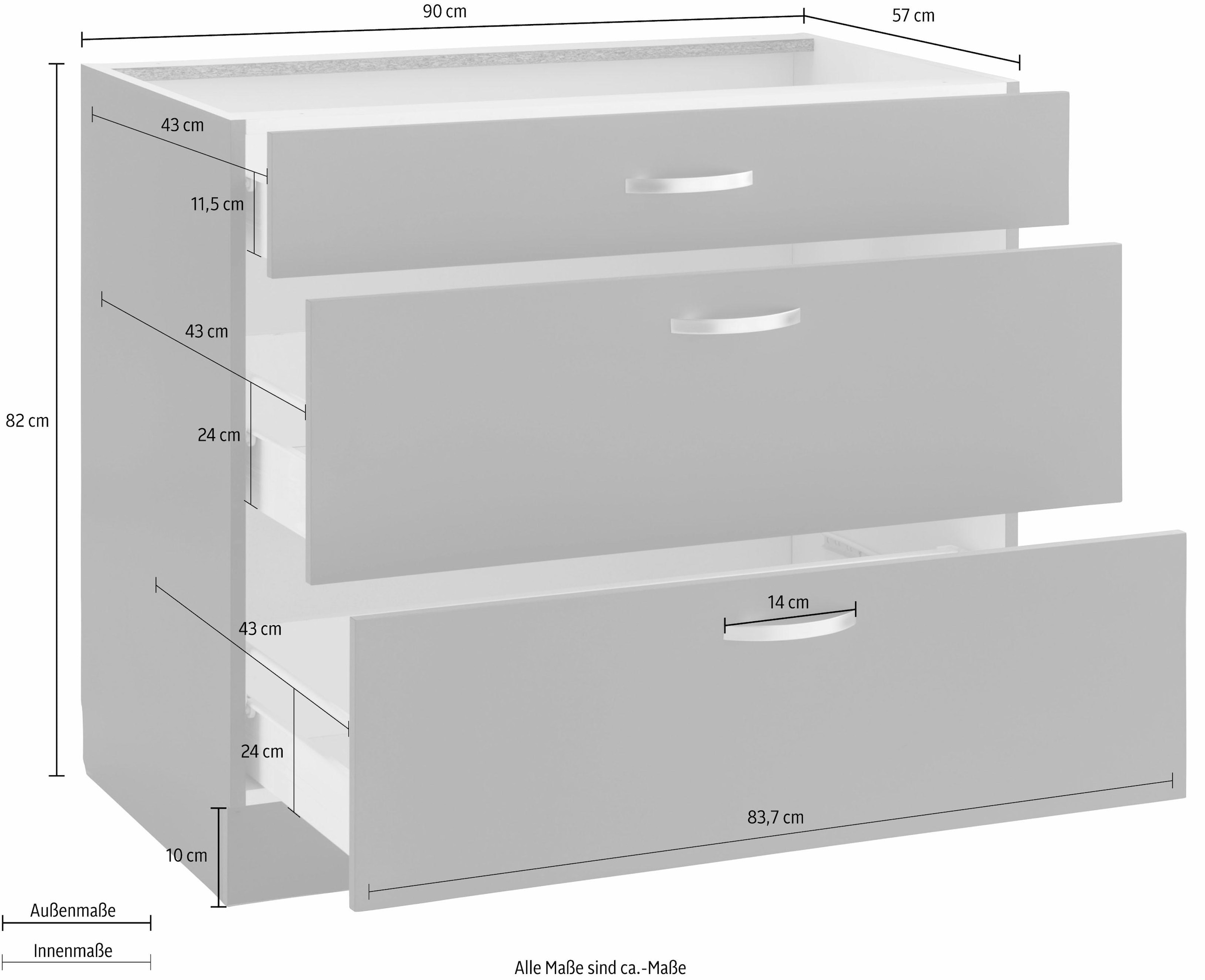 wiho kuchen unterschrank cali 90 cm breit mit 2 grossen auszugen online kaufen otto