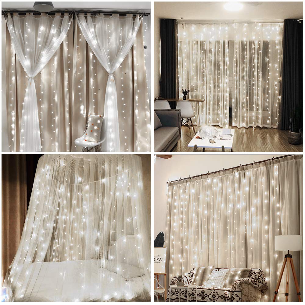 vegena led usb lichtervorhang 3m x 3m 300 leds lichterkettenvorhang mit 8 modi lichterkette gardine fur partydekoration schlafzimmer innenbeleuchtung weihnachten deko weiss energieklasse a innenbeleuchtung beleuchtung memorial cards ie