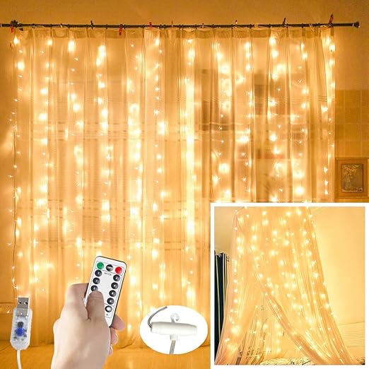 hongma led lichterkette gardine lichte 3x3m dekoration fur zimmer party weihnachten hochzeit mehrweg warm amazon de beleuchtung