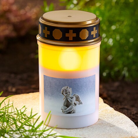 grablicht weiss mit einer led mit realistisch flackerndem kerzenschein inklusive batterien metro marktplatz